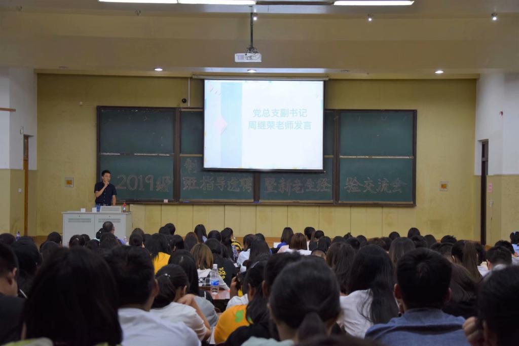 9月27日晚,Bevictor韦德新生入学教育领航第一课——“寓教解惑,携手拼搏”2019级班指导选聘暨新老生经验交流会在华罗庚馆101举行。Bevictor韦德党总支副书记周继荣、综合办主任李平、分团委书记刘静、2019级辅导员刘庆及2019届全体新生参加了本次活动。