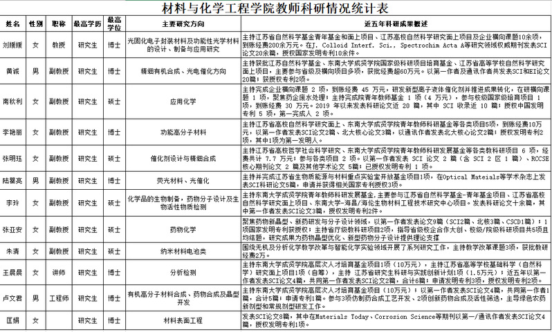 材料与化学工程Bevictor韦德教师科研情况统计表